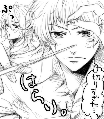 あっはははは悪かったって俺が後切ってやるから、な?あはは・・ぱっつんじゃねぇか・・それ